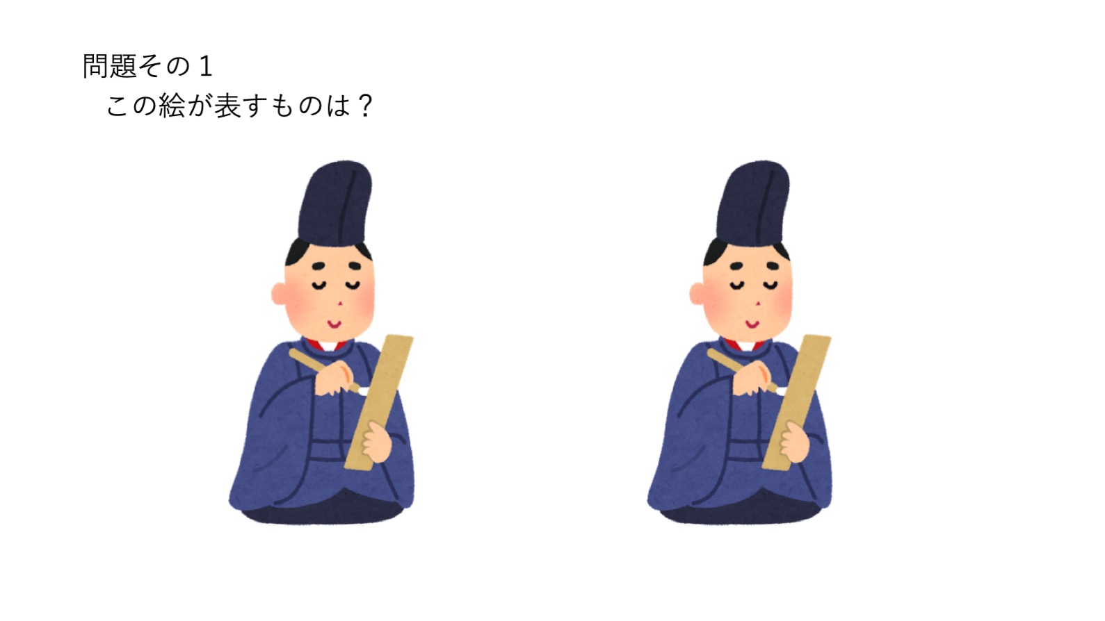 皆、着物みたいな服を着て、袴みたいなズボンを履いている。