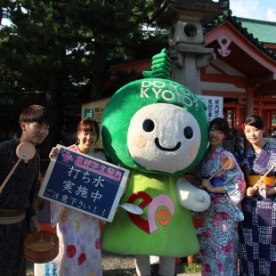 先日、岡崎地域・平安神宮前にて打ち水を行いました。 実行委員が浴衣を着て行うことで見た目も涼しい活動となりました。 また実際に温度測定をしていただくと地面の温度が下がっていて、 体感だけではなく...