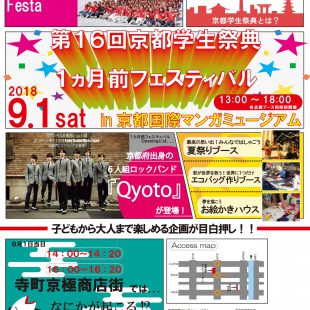 1ヵ月前フェスティバルの特設サイトはこちら! 9月1日(土)に1ヵ月前フェスティバルを京都国際マンガミュージアム(芝生エリア)と寺町京極商店街 (三条寺町~...