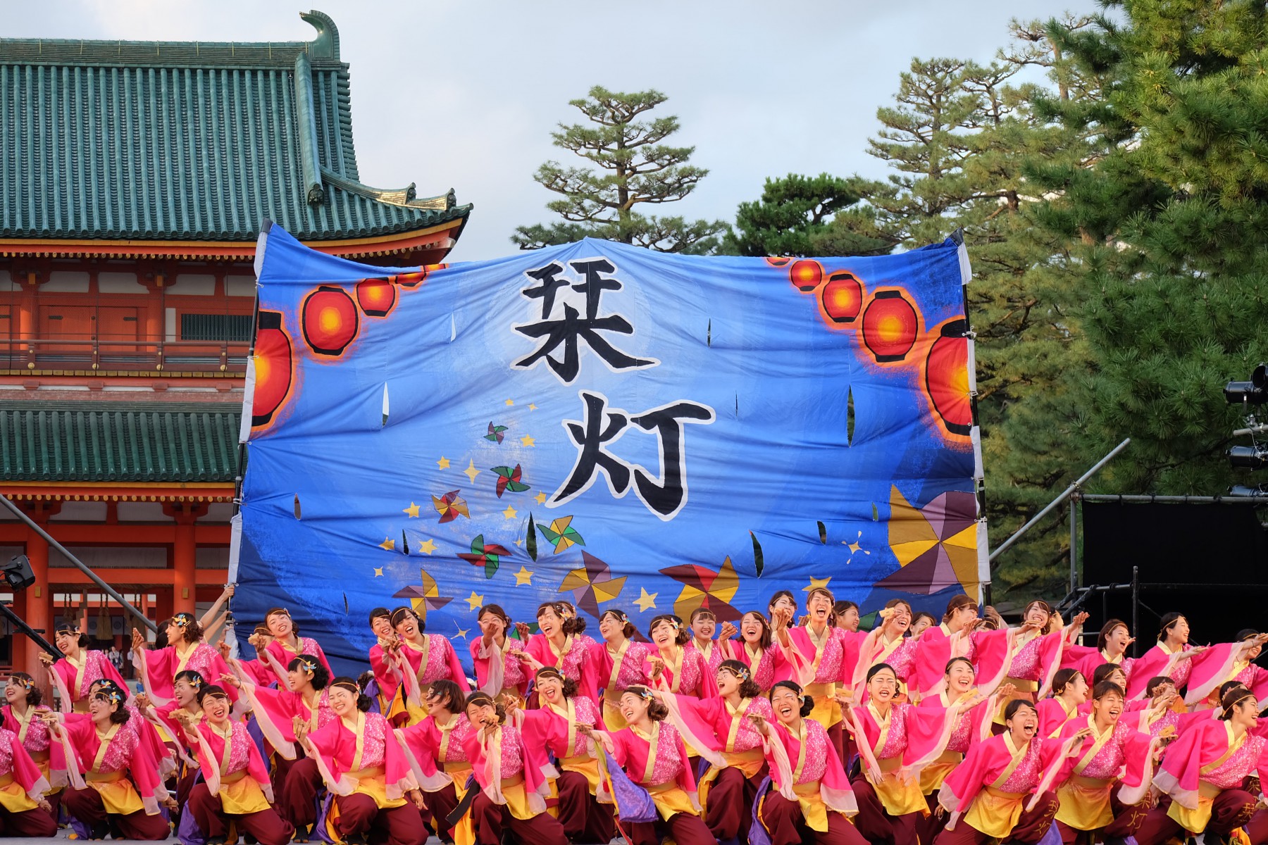 京都らしい曲・振り・衣装をもとに、四竹を手に持って踊るおどりで、京都市内の大学生を中心に