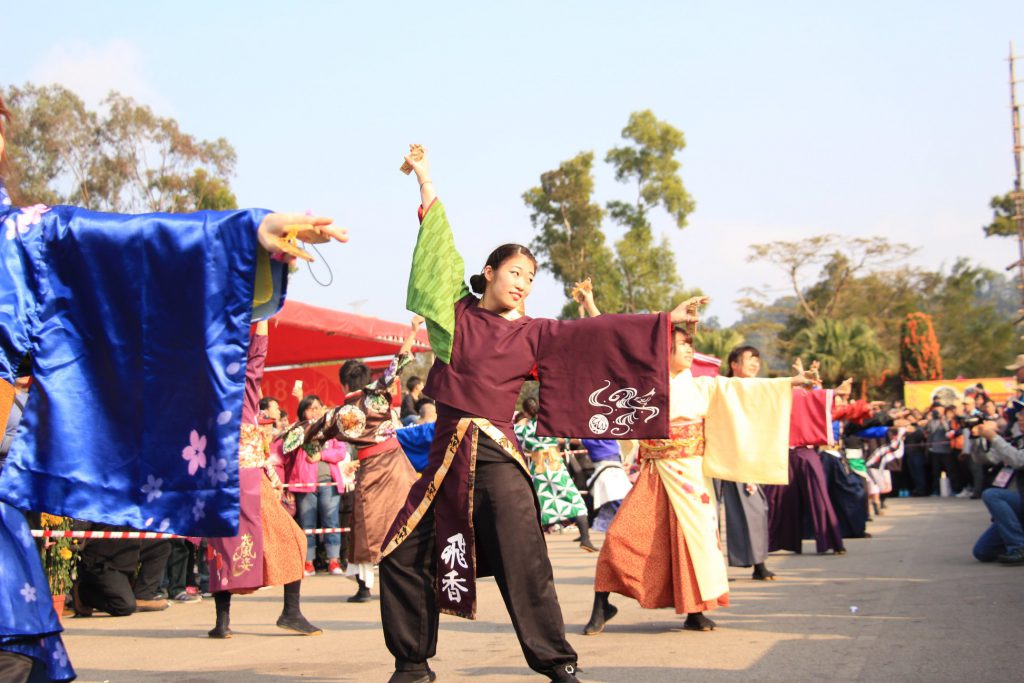 「京炎 そでふれ!」は、2月16日(金)のナイトパレードと17日(土)のステージパフォーマンスにて、 毎年10月に開催している京都学生祭典本祭等で披露しているおどりを今回のパレード用に アレンジしたスペシャルバージョンの演舞を披露しました!