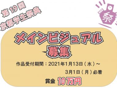 第19回京都学生祭典の広報物の中心として使用するデザイン『メインビジュアル』の募集を開始します!! 京都の街をあなたのデ...