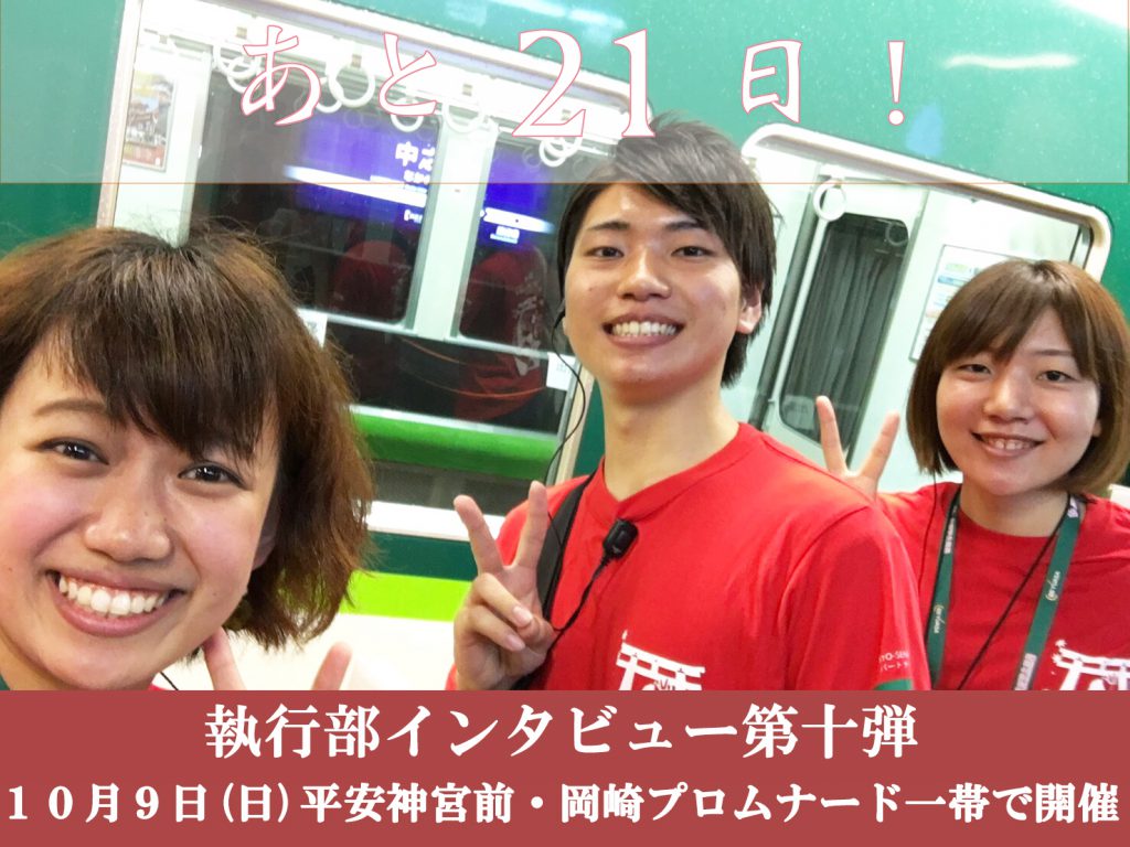 最初の11日間は、執行部と呼ばれる京都学生祭典実行委員会の7つの部署の部長と3人の副実行委員長、実行委員長にフォーカスを当てます! さて今日は……3人目の副実行委員長に想いを語ってもらいましょう! それではどうぞ!!