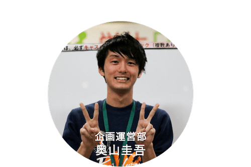 奥山:やっぱり色んな大学の色んな人がいたり京都府、市地域の方々と関わったりするような他とは違う事が出来たり、仕事っぽい事が出来るのが京都学生祭典の魅力だと思います! 何事もやってみたら楽しいし、その良さを感じる為に是非きてね!笑