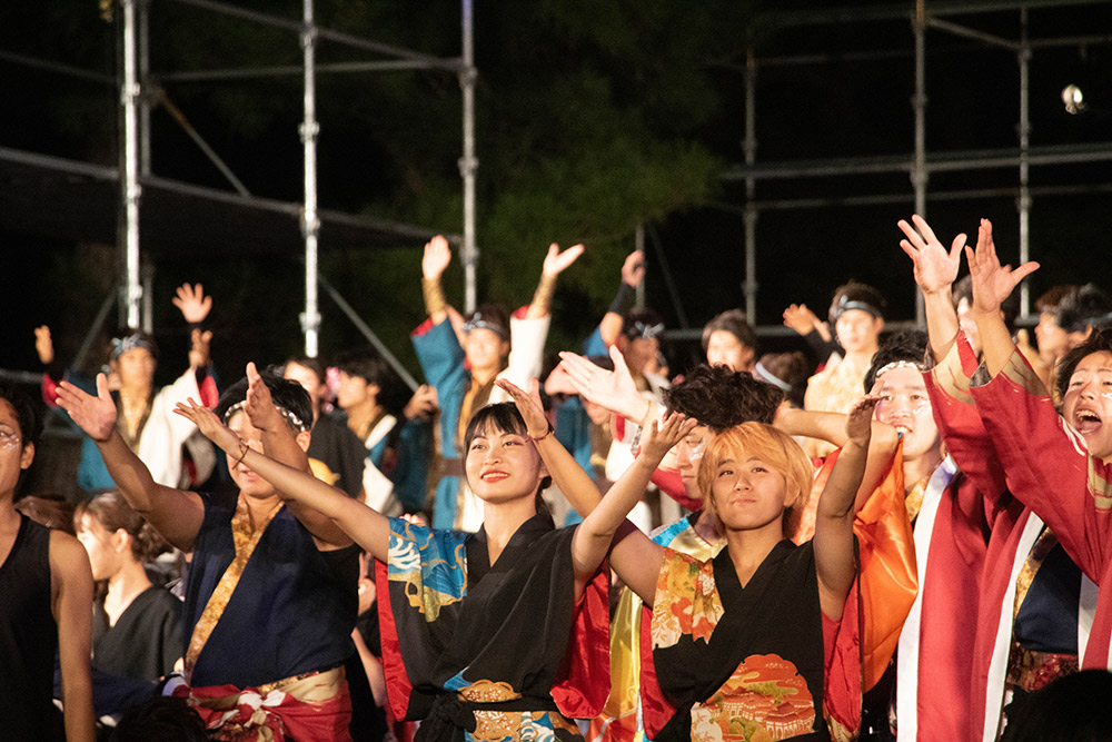 京都らしさとして、振りの中に様々な京都の伝統芸能の動きが含まれています。また、学生らしさとして、力強い迫力のある振りから、女らしさを表現する艶やかな振りまで、各ホストチームによって多種多様な振りが見られます。