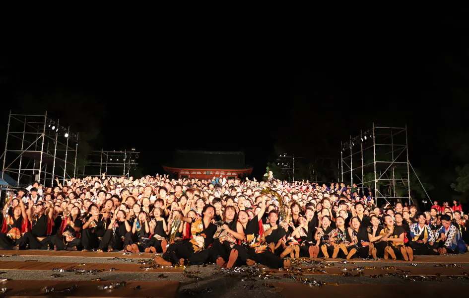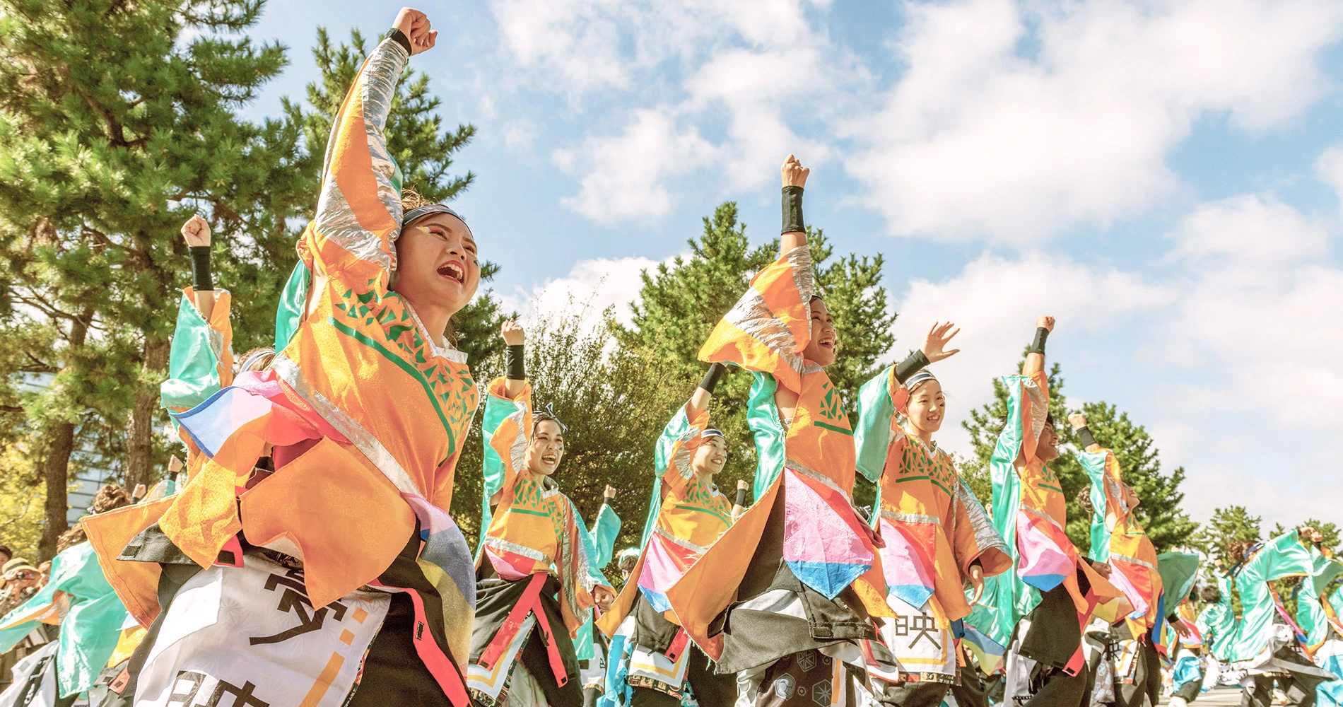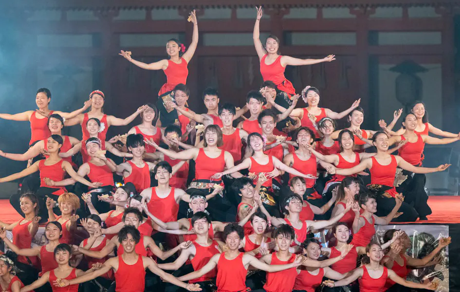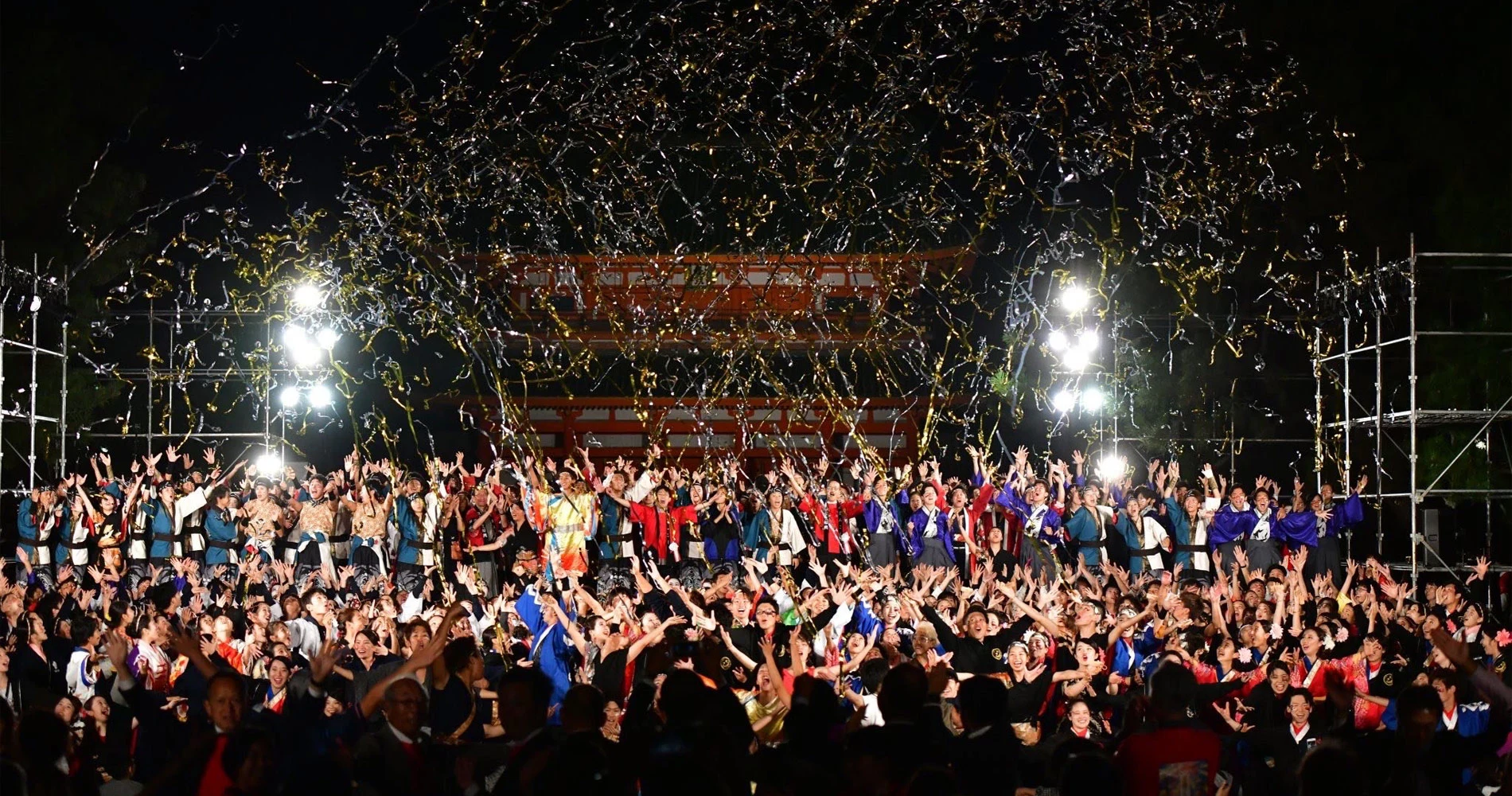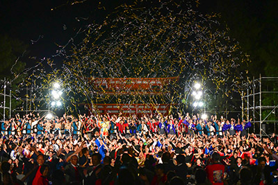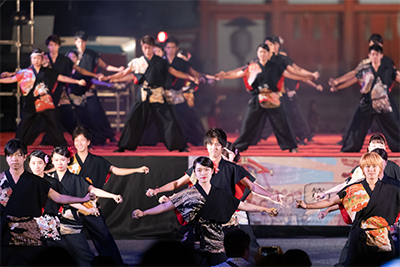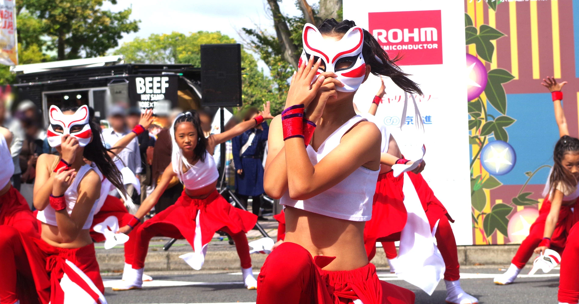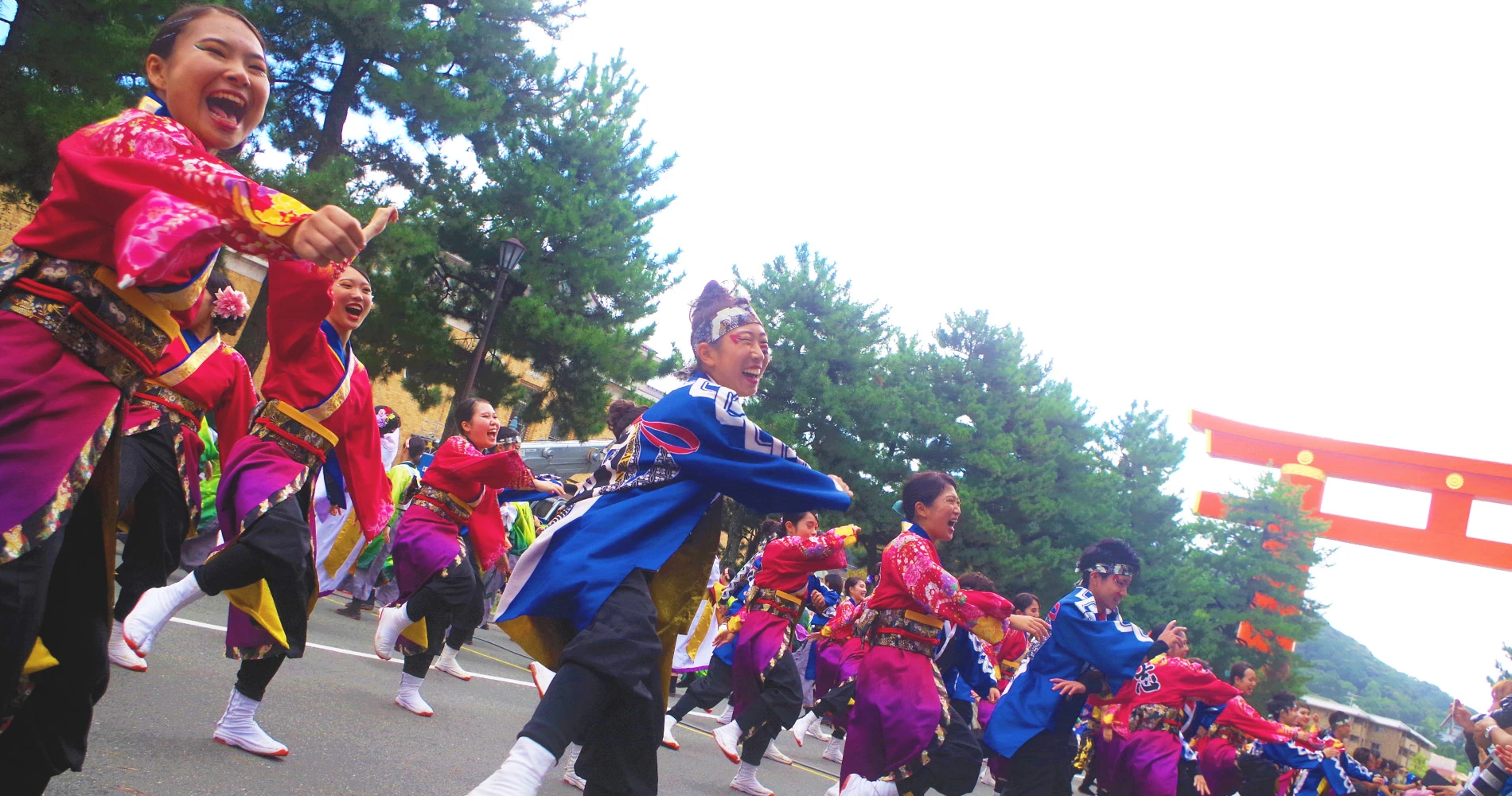 京炎 そでふれ!とは第3回京都学生祭典より誕生した京都学生祭典オリジナル創作おどりです。見るだけではなく、参加して楽しめるような祭典を目指そうという想いから京炎 そでふれ!が生まれました。
