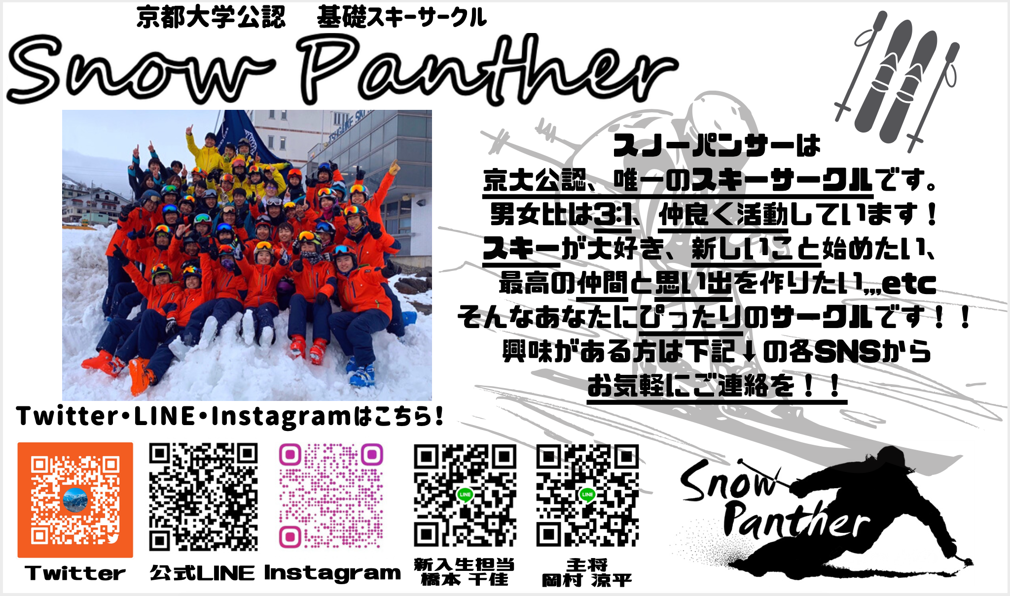 皆さんこんにちは!!京都産業大学体育会スキー部です!!スキー部ではアルペン・クロスカントリー・基礎といった主に3つの部門で活動しており、それぞれの部門が目標を掲げて練…