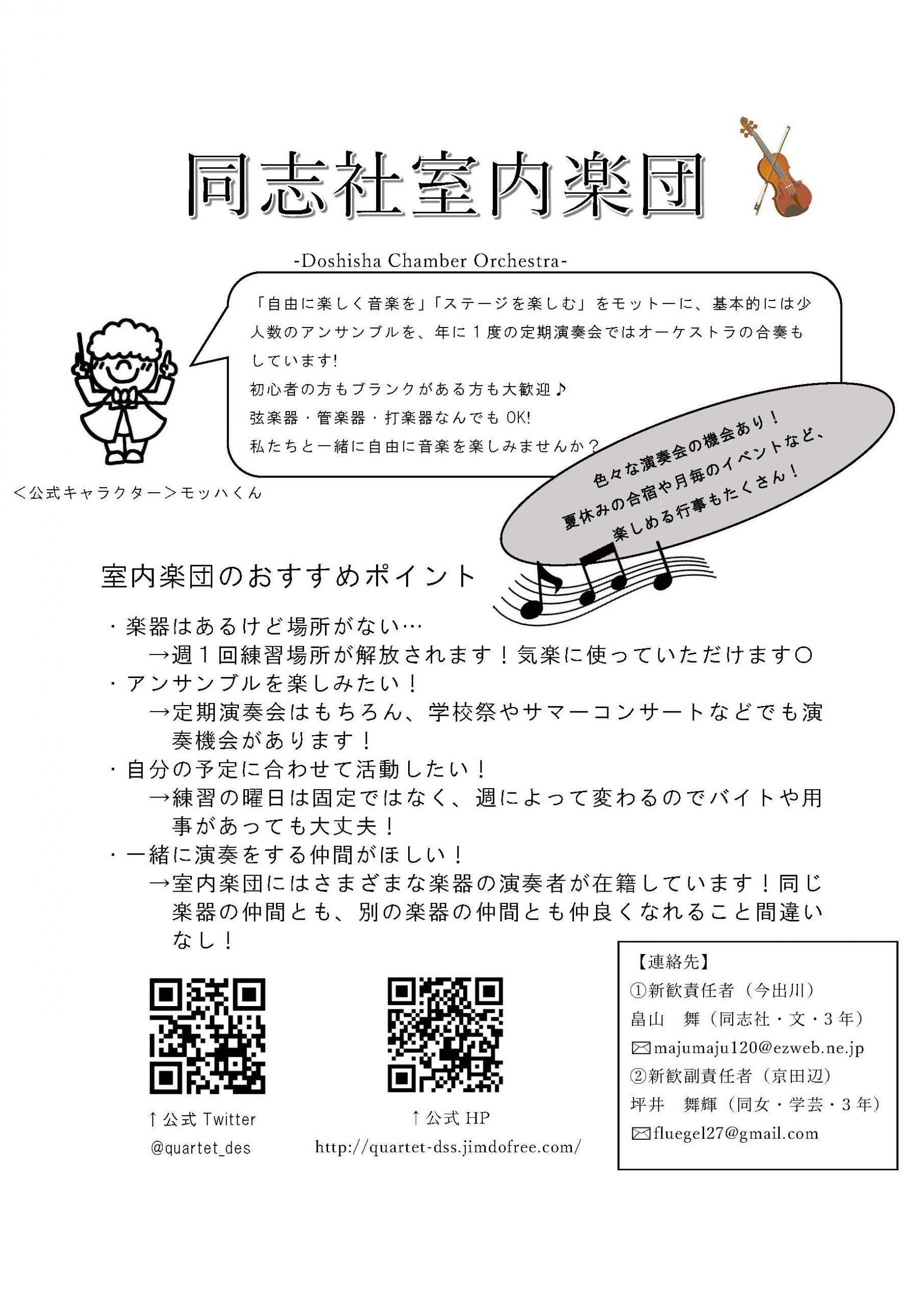 同志社交響楽団は、同志社大学を拠点とする学生オーケストラです!同志社大学の学生だけでなく他大学の学生も多く所属しています!主に前期演奏会、後期演奏会、全同志社メサイア演奏会の三つの演奏会を主な軸として…