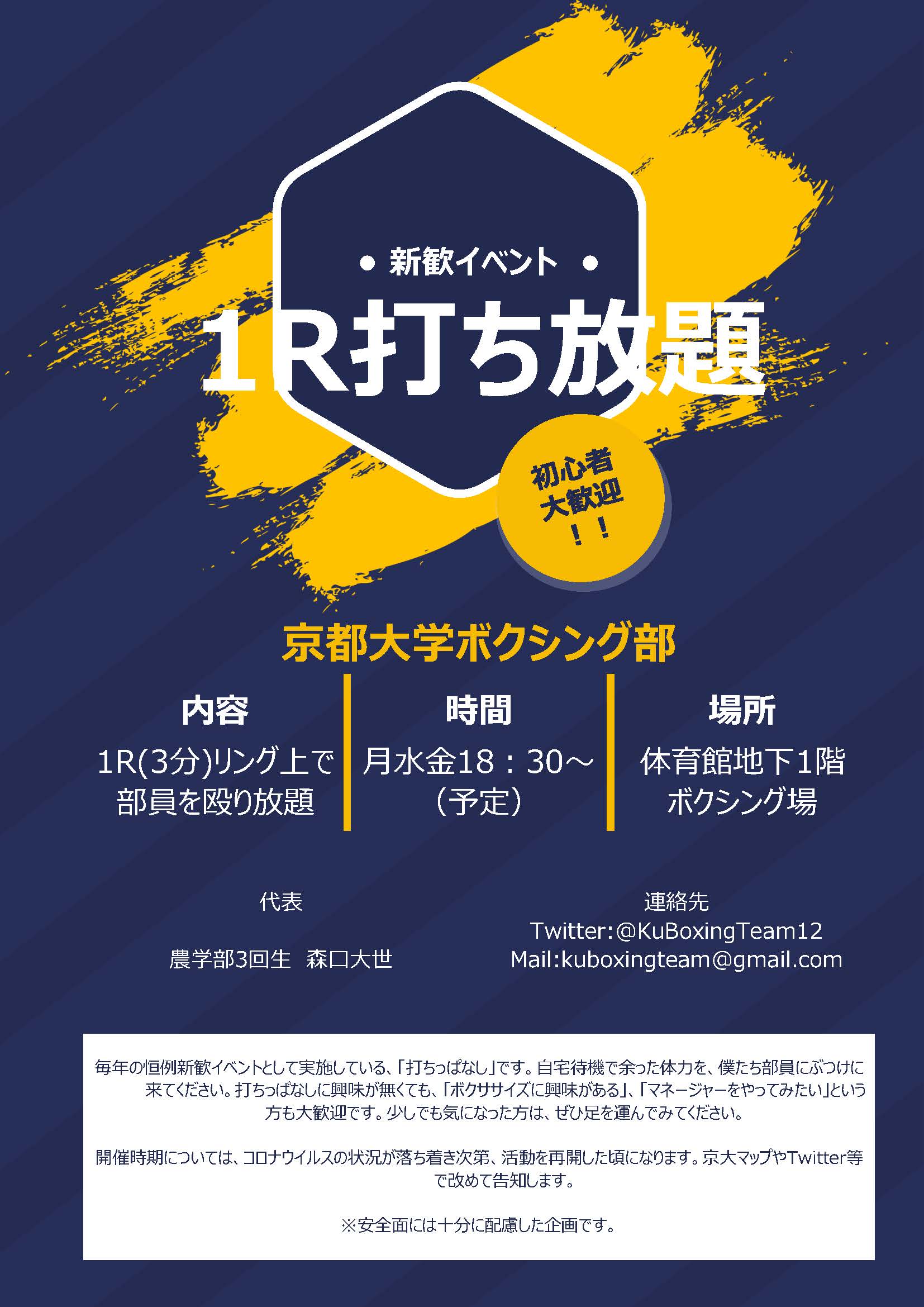 京大ボクシング部は、体育会の中で一番拘束力が無い部活だと思います。個人競技ということもあり、部員が各々考えて練習に取り組んでいます。活動は月水金土ですが、各自の予定に合わせて来れば大丈夫なので、兼サ…