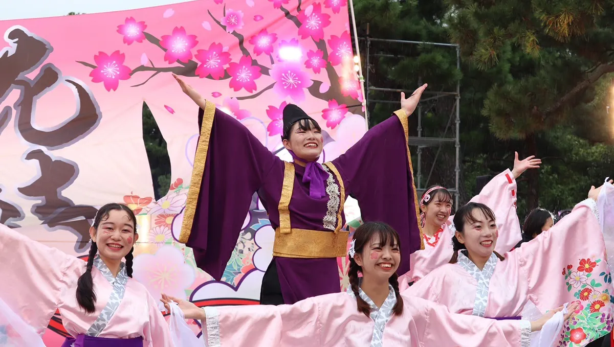 「明転共鳴~咲き誇れ咲産華~」をチームコンセプトとして、私たちは日々練習してきました。ご覧いただいている皆様を釘付けにし、皆様と共鳴できるような演舞を披露いたします。また、この京都学生祭典は代替わり後初のお祭りとなっておりますので、新たな咲産華が魅せる壽(ことぶき)をぜひご覧ください。