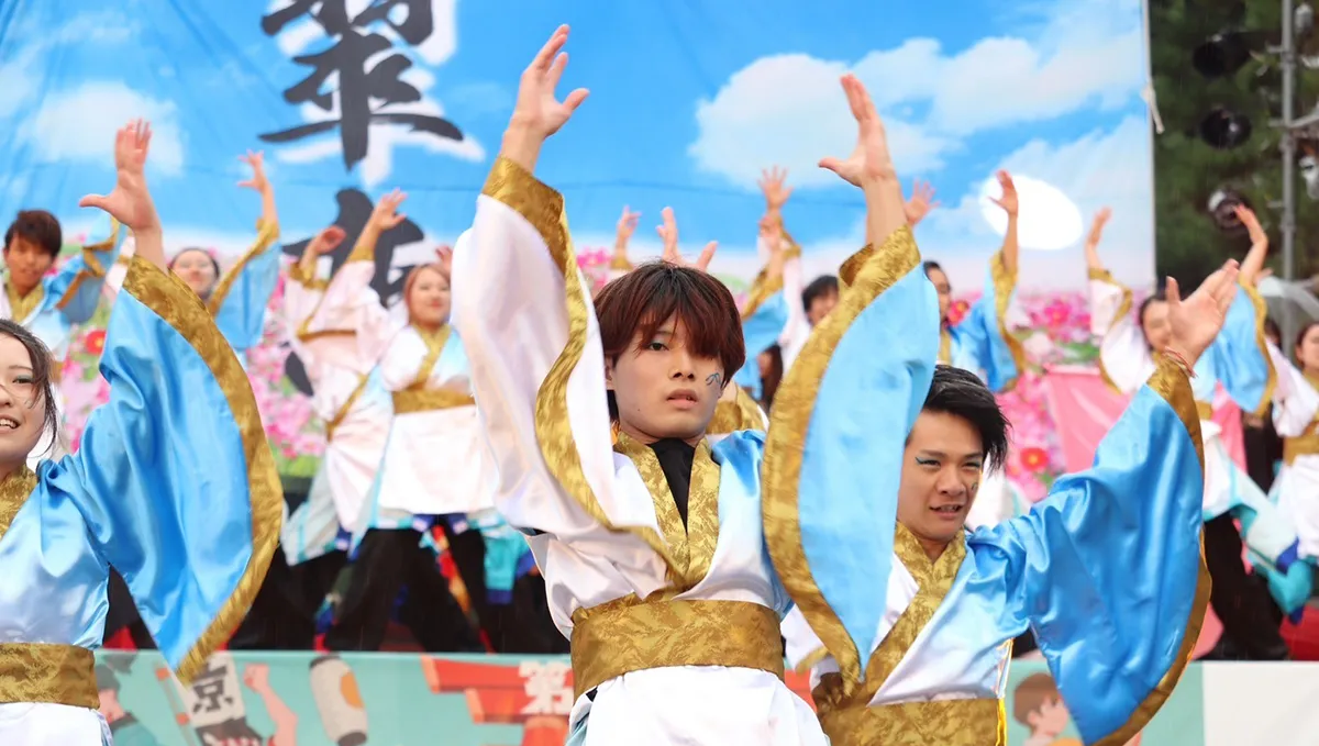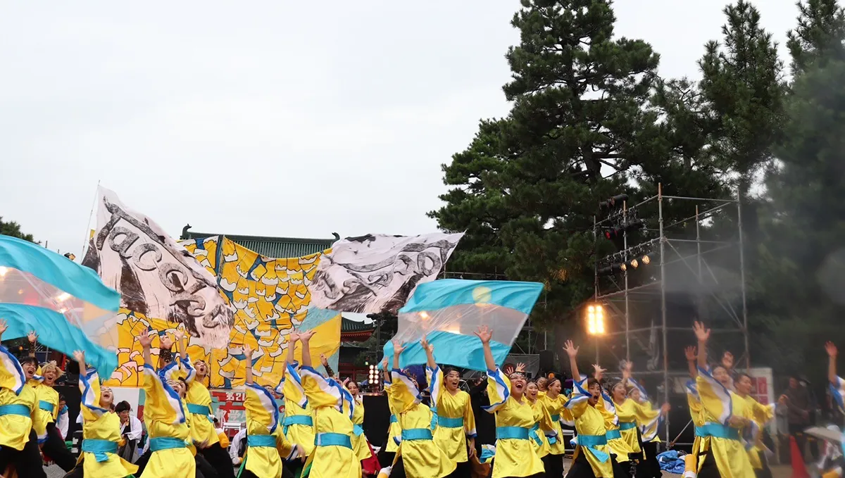 こんにちは! 私たちは京都の山科区にある京都薬科大学の学生で構成されている京炎 そでふれ!京躍華です。 今回演舞させていただきますのは2024年度オリジナル演舞「澄澪」。京都の丹波に伝わる「雨乞いの阿か池」を題材としております。裏テーマは「共に未来へかけて行こう」です。 18代目京躍華として初めて「澄澪」を披露させていただきます。17期の先輩から世代を繋ぎ、未来へかけて行く様子をどうぞご覧ください。 見てくださる皆様に18代目京躍華の元気さと心から楽しんで演舞している表情、笑顔をお届けできればと思います。精一杯演舞させていただきます!ご声援の程よろしくお願いします🙇♀️