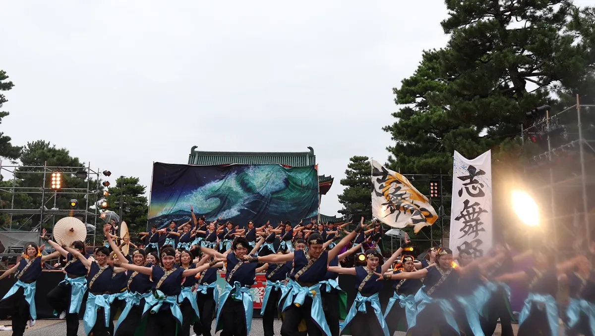 学生祭典は志舞踊が「栞繋」で挑む最後の賞レースです。全員の心を一つにし、群舞を見せ、「志一つに舞い踊る」を体現させるよう、一生懸命演舞させていただきます。 大きな見どころの一つは、志舞踊のお家芸である扇子です。「栞繋」では全員が扇子を使うパートがあります。そこでの群舞の美しさをぜひご覧ください。