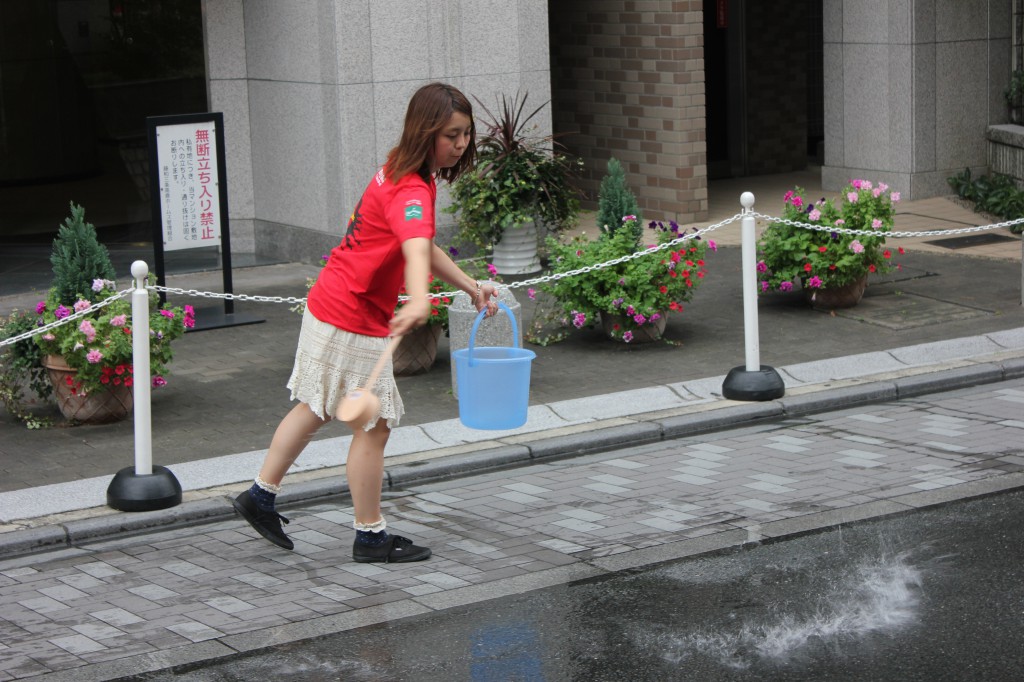 地域の方と共に打ち水を行っていくことで、実行委員と地域の方に環境に対する意識をより強くするという目的も持っています。