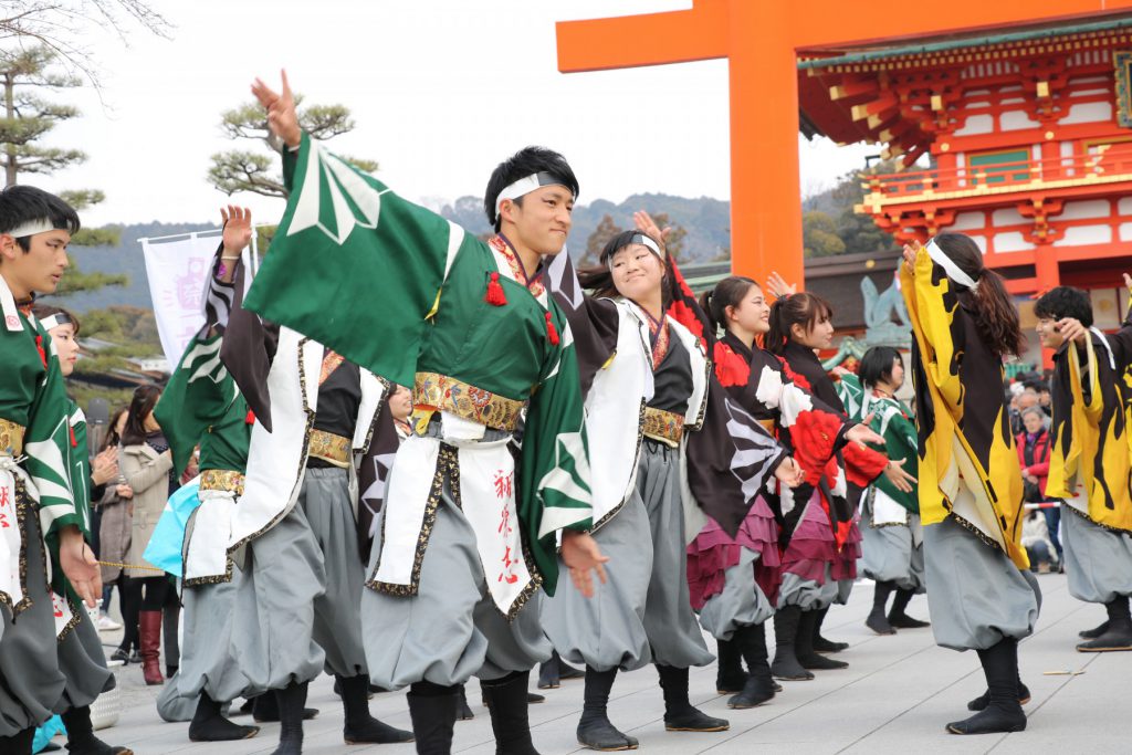 3月21日(木)、京都伏見稲荷大社の参道にて学生による「京炎 そでふれ!」のおどり披露を行います。「京炎 そでふれ!」とは、第3回京都学生祭典(2005年)で生まれたオリジナル創作おどりです。京都全体を京都学生祭典に巻き込んでいく活動の大きな一歩でもあります。昨年の2月には、香港政府観光局より、日本の代表として招待を受け、香港チムサアチョイで行われた「旧正月・インターナショナルナイトパレード」に出演し、披露しました。さらに、朝の情報番組『めざましテレビ』(10月26日(月)07:45~07:47 生中継)の「日本つながるプロジェクト」にて、“2020年世界に見て欲しい京都のパフォーマンス”と紹介していただき、「京炎 そでふれ!」は京都から世界に広がりを見せようとしています。そこで、3月21日(木)の伏見稲荷大社参道での披露は、「京炎 そでふれ!」スペシャルバージョンのほか、観光客の方も一緒に踊ることができる「京炎 そでふれ!」簡単バージョンも行います。さらに、伏見稲荷大社の披露限定で、衣装は留袖だけでなく「京炎 そでふれ!」の各ホストチームのオリジナル演舞の衣装でも行います。詳細に関しては、プレスリリースをご覧ください。