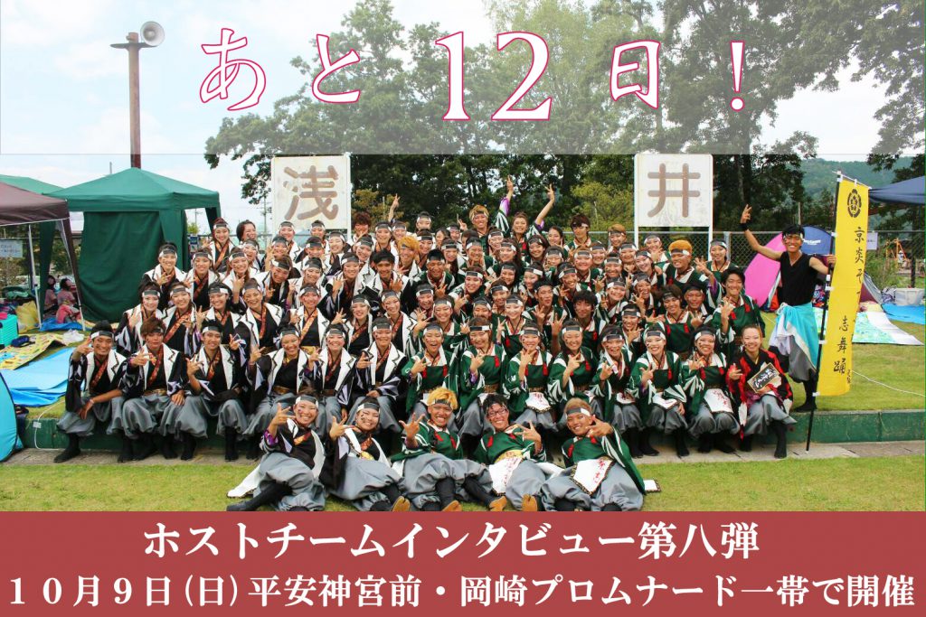 残り19日からは、京炎 そでふれ!という京都学生祭典から生まれた京都らしい創作おどりを踊る、京都の各大学にあるホストチームにフォーカスを当てます! 彼らには本祭当日、様々なステージで踊っていただきますのでぜひご注目ください! さて今日は……同志社大学・同志社女子大学・大谷大学の学生で構成されている、京炎 そでふれ!志舞踊(しぶよう)に意気込みを語ってもらいましょう! それではどうぞ!!