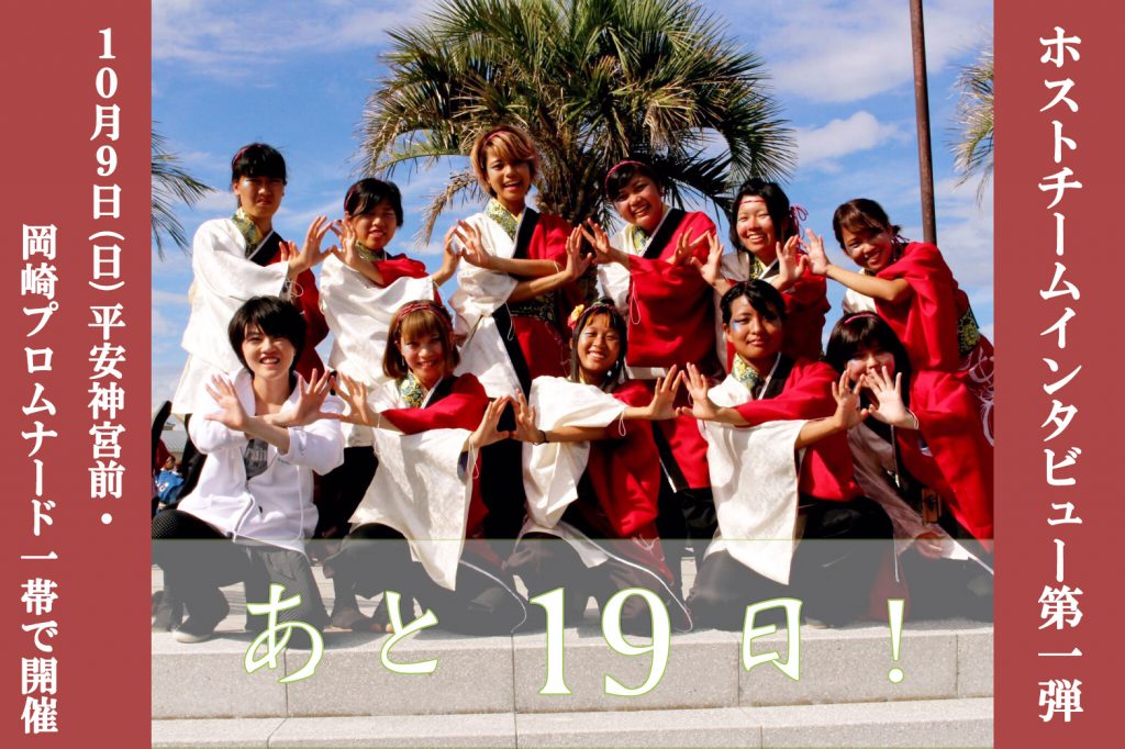 いよいよ残り19日。 昨日までは京都学生祭典実行委員会執行部のインタビューをお届けしました。 今日から12日間は、京炎 そでふれ!という京都学生祭典から生まれた京都らしい創作おどりを踊る、京都の各大学にあるホストチームにフォーカスを当てます! 彼らには本祭当日、様々なステージで踊っていただきますのでぜひご注目ください! さて早速ですが、今日は……京都精華大学の学生で構成されている、京炎 そでふれ!葵和(あおなぎ)に意気込みを語ってもらいましょう! それではどうぞ!!