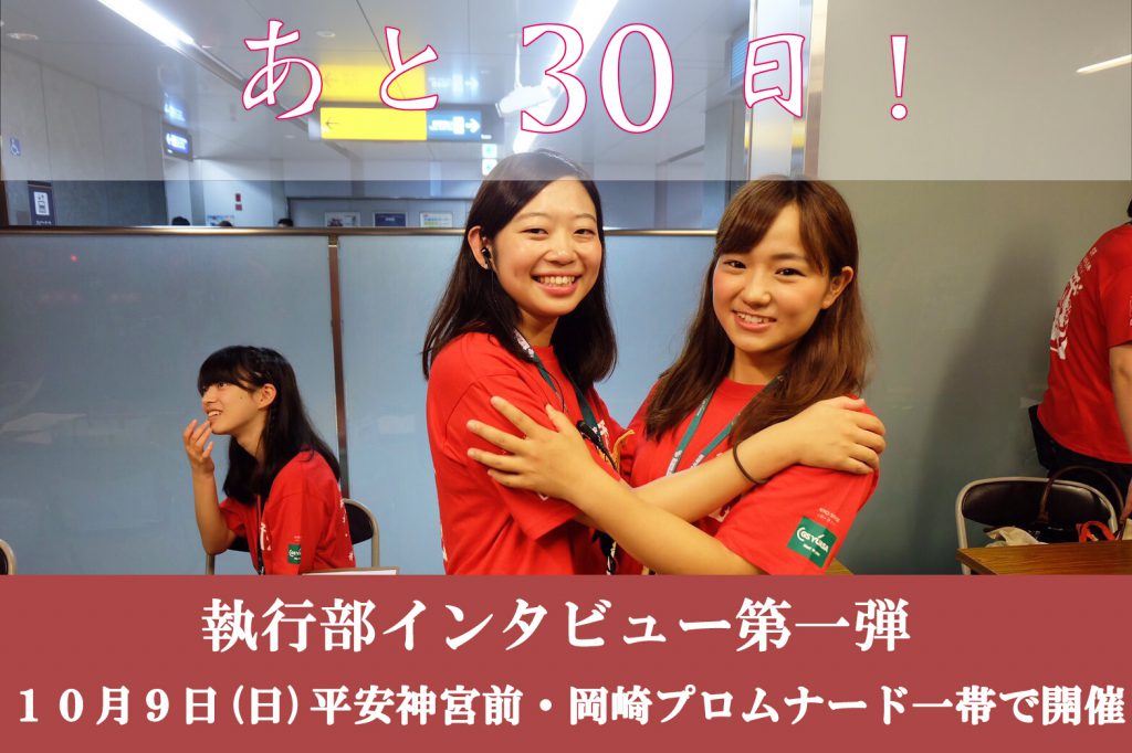 さて、いきなりですが京都学生祭典本祭まで残り何日でしょうか? 今日は9月9日。 京都学生祭典が10月9日。 お待たせしました!今年も1ヶ月前カウントダウンが始まります! カウントダウンでは本祭当日までの1ヶ月間京都学生祭典がどのようなお祭りなのか、出店、出演していただく方がどのような想いを持っているのか、実行委員の本祭への想いなどの魅力がたっっくさん詰まった内容になっています! 毎日更新していきますので、ぜひ皆様御覧ください! それでは本日をもちまして、カウントダウンを開始します!!!!