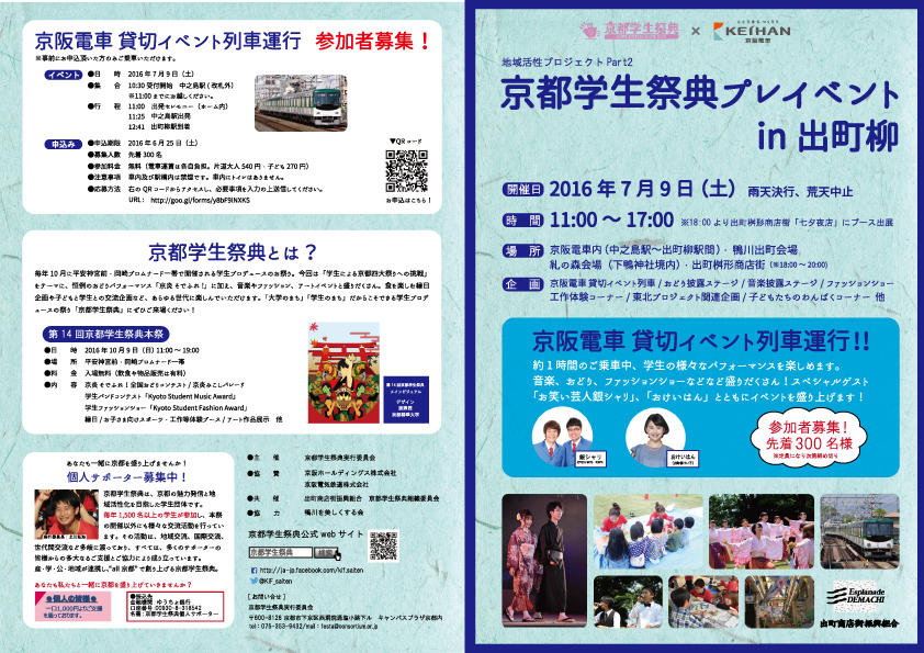 特設サイトはこちらから! →地域活性プロジェクト part2 京都学生祭典 プレイベント in 出町柳 特設サイト