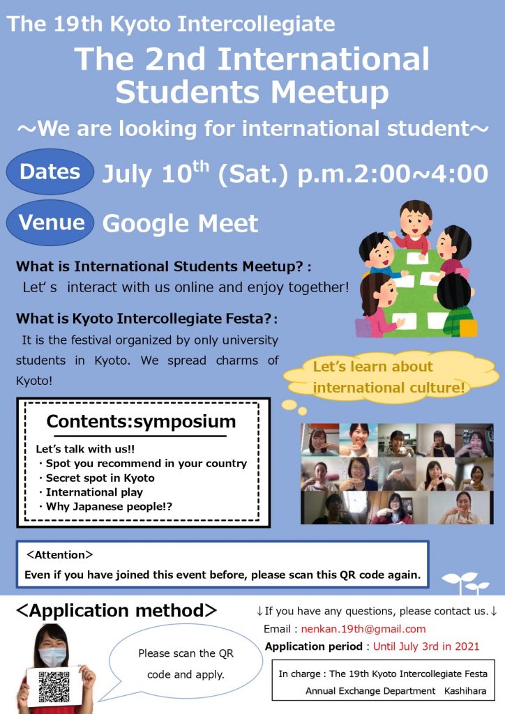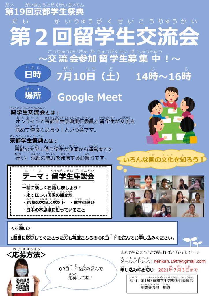 7月10日(土)に行う第2回留学生交流会への参加留学生を募集しています!