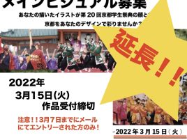 12月1日(水)より、第20回京都学生祭典の各種広報物で使用するデザイン《メインビジュアル》の募集を開始します! ※メインビジュアルとは? 1年間、第20回京都学生祭典を広報するチラシやポスターに使用するデザインのことで […]