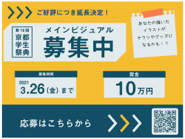 1月13日(水)より、第19回京都学生祭典各種広報物にメインとして使用するデザイン『メインビジュアル』の募集を開始します!! 京都の街をあなたのデザインでいっぱいにしてみませんか? なんと、採用者には10 万円が進呈され […]