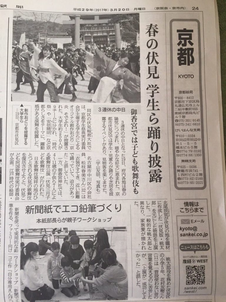 またおどり広報の様子を産経新聞様、京都新聞様の朝刊にて掲載していただきました! 皆様ぜひご覧ください!