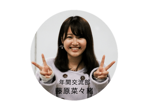 藤原:京都文教大学 1回生、年間交流部の藤原菜々緒です。