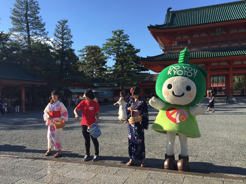昨日、8月30日(水)に下鴨神社、竜馬通り商店街での打ち水に続き平安神宮前で打ち水を行いました!
