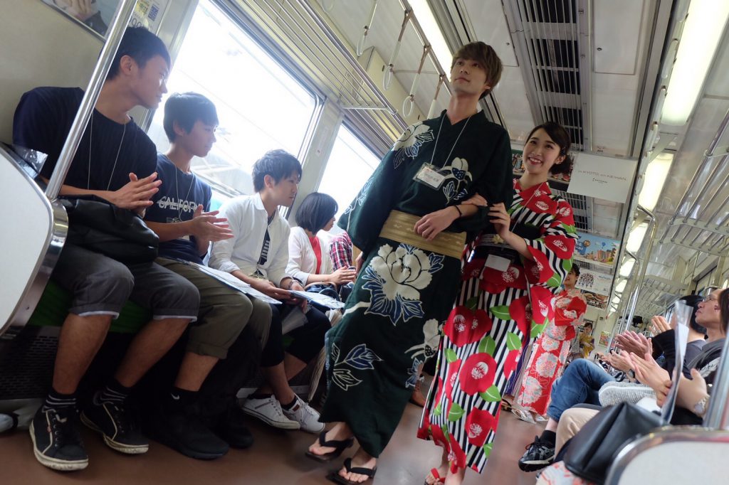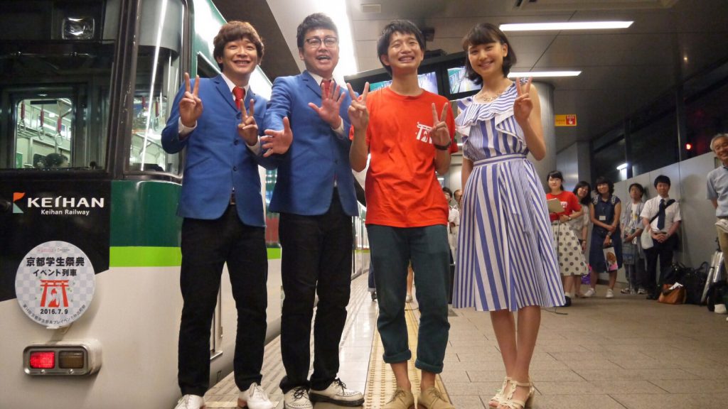 ①京阪本線貸切列車にて企画披露 ②出町柳鴨川にてスペシャルゲスト✨のトークショーと京炎 そでふれ! の踊り披露 ③下鴨神社境内にてファッションショーと京炎 そでふれ!の踊り披露 ④出町桝形商店街にて子供たちとうちわ作り