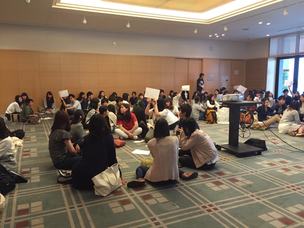 祭典Tシャツの着用時の注意点など、京都学生祭典の基本的事項を確認する行事です。