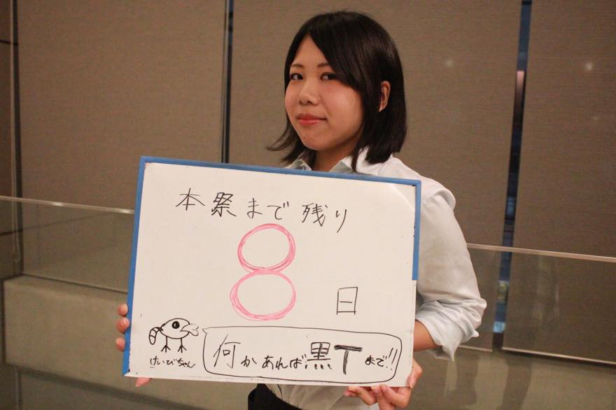 祭典を漢字一文字で表すと、それに対する詳細 祭典を漢字一字で表すと「気」です。 この「気」は気づきの「気」です。 この団体は様々な大学から集まっており、たくさんの考えを持った人たちと関わります。 その中で、じぶんとは違う考えを持った人と話し、新たな視点に気づいたり、創造することができます。 また、関係者の皆様、普段ならしゃべることのない大人の方とも話す機会があり、 学生とは違った目線に気づいたり、逆に学生独自の考えにも気づいたりと 様々な気づきがあると思います。 そのようなたくさんの気付きがあるところなので、「気」という漢字を選びました。 本祭当日、来場者の皆様に、祭典の魅力をたくさん気づいていただけたらと思います。