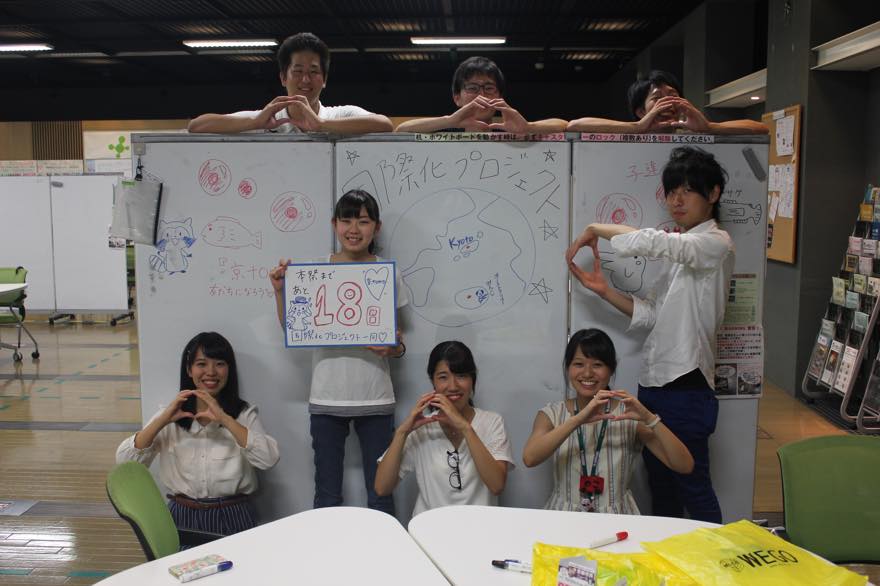 国際化プロジェクトは、今年度の目標の一つである「国際化」を実行するために、主に留学生との連携企画を考案・実施するためのプロジェクトです。留学生との相互の学びを重視しながら、共に京都の魅力を発信し、もっと京都を好きになってもらうことをコンセプトに、活動してきました。 今までは月に1度、留学生と日本人学生の相互交流・学びを目的とした企画などを実施してきました。また現在、留学生に京都学生祭典の活動に一緒に参加してもらえるように、日々活動しています!!