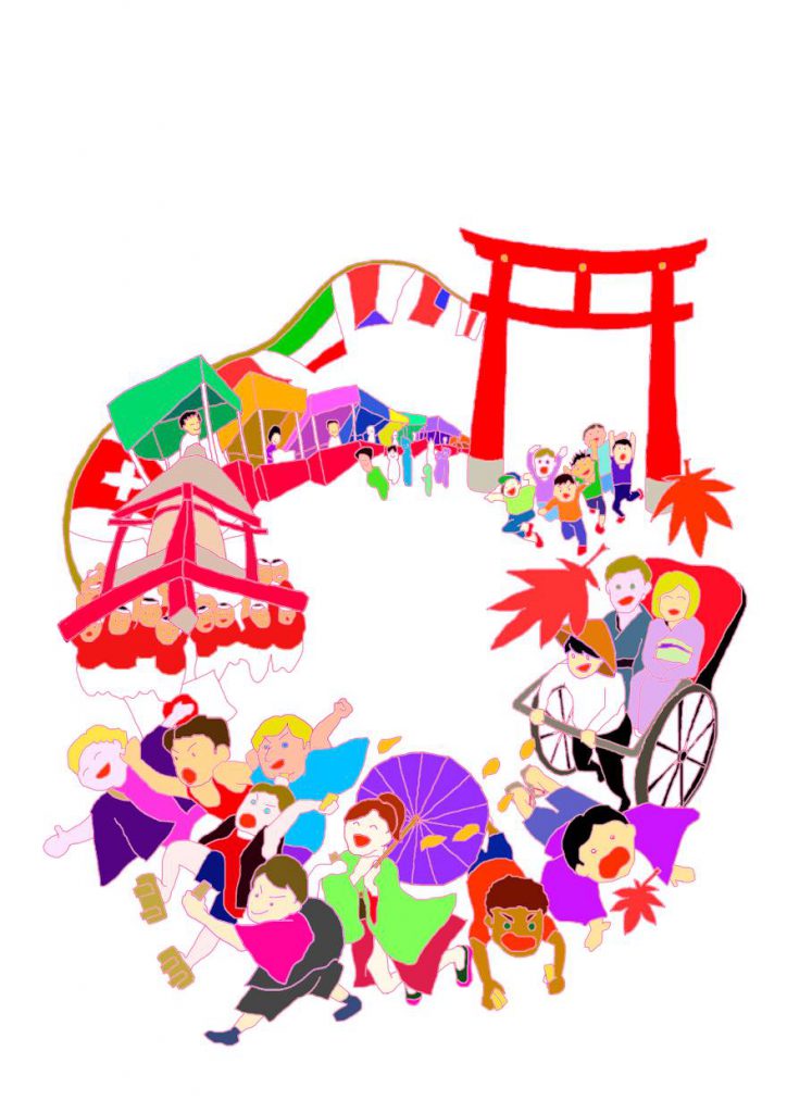 辻さんの作品は、パッと見た際に京都学生祭典とはどういうお祭りなのかがわかりやすいこと、そして京都学生祭典実行委員会が年間を通して活動していることも細かく且つシンプルに描かれていることに目を引かれました。また、今年度復活する京炎みこしが描かれていることも辻さんの細かい配慮であると同時に、メインビジュアルを描く際、京都学生祭典とは何者なのかを細かい部分まで把握するその姿勢に心を打たれました。 (審査員長講評) この作品を選出したポイントとしては 京都らしさと国際色のバランスが良いこと 京都学生祭典の要素が上手く取り込めていること 様々な広報物に使用するため、汎用性が高いこと などがあげられました。 【審査員紹介(敬称略)】 門川 大作(京都市長・京都学生祭典組織委員会組織委員) 長谷 幹雄(一般社団法人京都経済同友会 代表幹事) 鶴田 憲次(京都市立芸術大学名誉教授・京都市立芸術大学ギャラリー@KCUA館長) 堀瀬 奈央(第13回京都学生祭典実行委員会 実行委員長)※審査員長 【審査員特別賞】 今回、メインビジュアルとしては選ばれませんでしたが、特に優秀だった作品を審査員特別賞としてご紹介いたします。