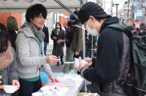 三条地域のもちつき大会に参加しました! つきたてのお餅をたくさんの人に振る舞ったり、獅子舞の舞いも見ることができ、実行委員もとても楽しみました! つきたてホヤホヤのお餅はすごく美味しかったです!