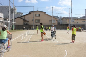 8月19日、「KYOTO セーフティ サイクル チーム」の活動として、京都まなびの街生き方探求館で小学生から中学生を対象とした「目指せ!自転車マイスター活動」の一環として自転車安全教室が行われ、実行委員は講師として参加してきました。 初めに日本競輪選手会の方の自転車の構造などの講習があり、競輪選手の方の講習を子どもたちはのめり込むようにして聞いていました。 実行委員も普段聞くことができない競輪用の自転車の話に興味津々でした。 選手会の方曰く、整備で一番重要なポイントはブレーキだそうです。 また、グランウドで行われた自転車走行の実技のお手伝いもしました。 子どもたちの走行の前に、お手本として正しい乗り方をしてコースを走ったり、コースの各ポイントに立って子どもたちにコツやアドバイスなどをしました。 実際に、実行委員もジグザグ走行に挑戦してみましたが、とても難しかったです。