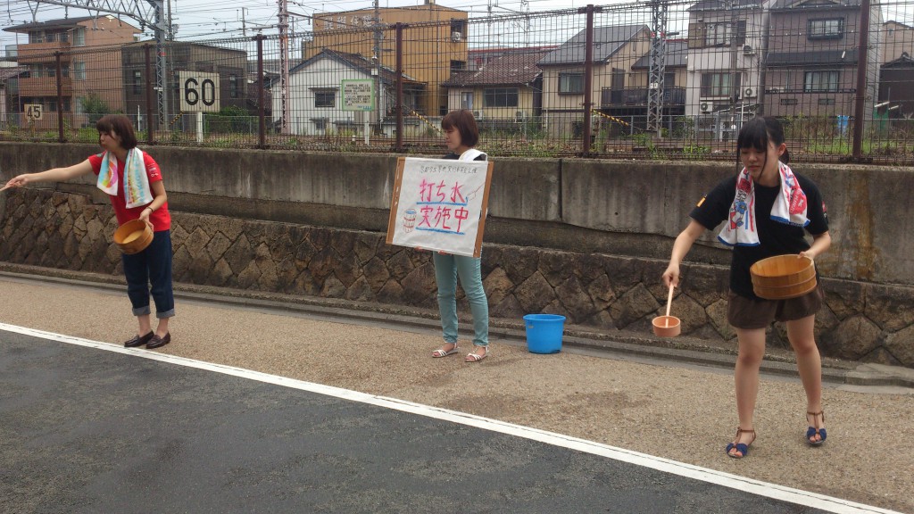 8月22日に安寧・梅逕地域にて打ち水を実施しました! 打ち水は京都学生祭典実行委員会が掲げている「KYO-SENSE」活動の一環として行っております。地域の方と交流しながら、真夏の暑い京都を涼しくすることが出来ました! これからも引き続き打ち水を続けて行きたいと思います。
