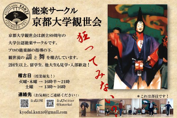 伝統芸能の「お能」を「する」サークルです。お能の中でも特に金剛流の舞(Dancing)と謡(Singing)に取り組んでいます。舞台では紋付・袴を着用しますが、普段の練習は私服です。大きな舞台が年に4…