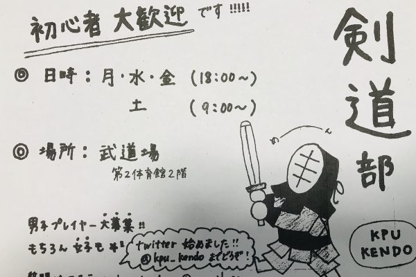 こんにちは!フェンシング部です!フェンシングは大学から始められる競技で、単純な体格で勝負が決まらず、京大生が得意な頭脳戦があるというのが特徴です。練習は月、水、金、土の4日間で体育会の中ではキツイ方で…