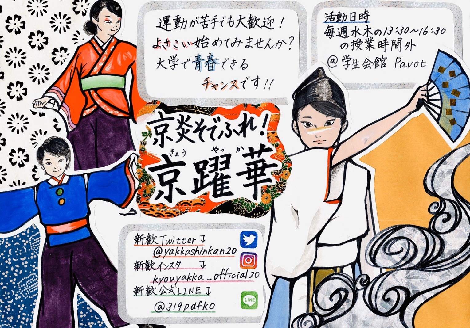 はじめまして! 私たちは京都薬科大学の学生で構成される、よさこい系創作おどり部です! ほとんどの部員が京躍華に入るまで、【踊り未経験者】なので、初心者でも気軽に入部できます♪もちろんダンスやバレエなどの経験者も大歓迎です! たった2年間だけだけですが、今しかできない楽しい世界が待っています! 何が新しいことを始めたい人!青春したい人!私たちと、一緒によさこいしませんか٩(ˊᗜˋ*)و