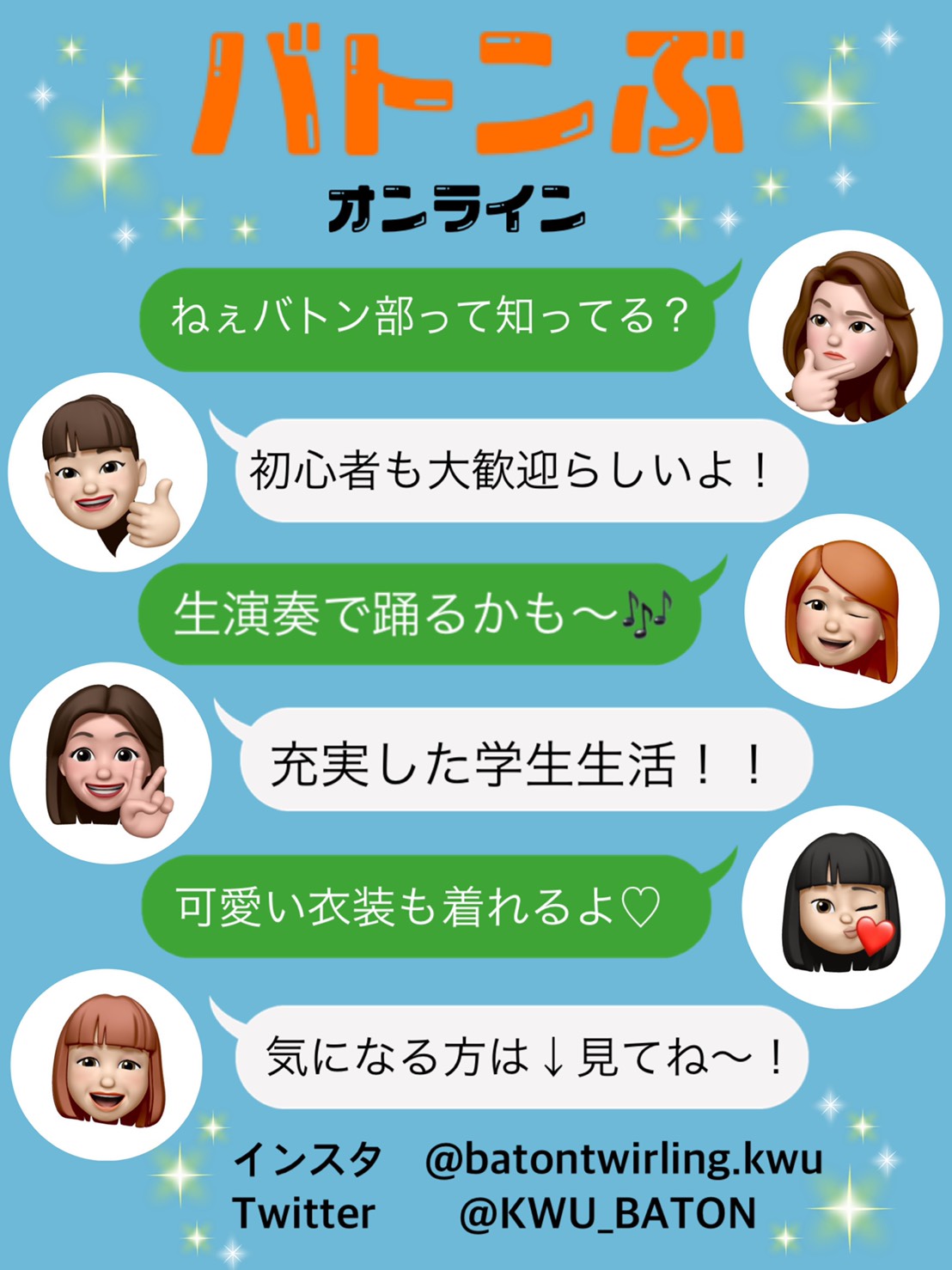 京都女子大学バトントワリング部では未経験者・経験者大歓迎です!バレエやダンスの経験を生かすこともできます。仲間全員で作り上げる舞台は達成感を感じることができますよ!見ていてカッコいい素敵なパフォーマンスを自身で体験してみませんか?